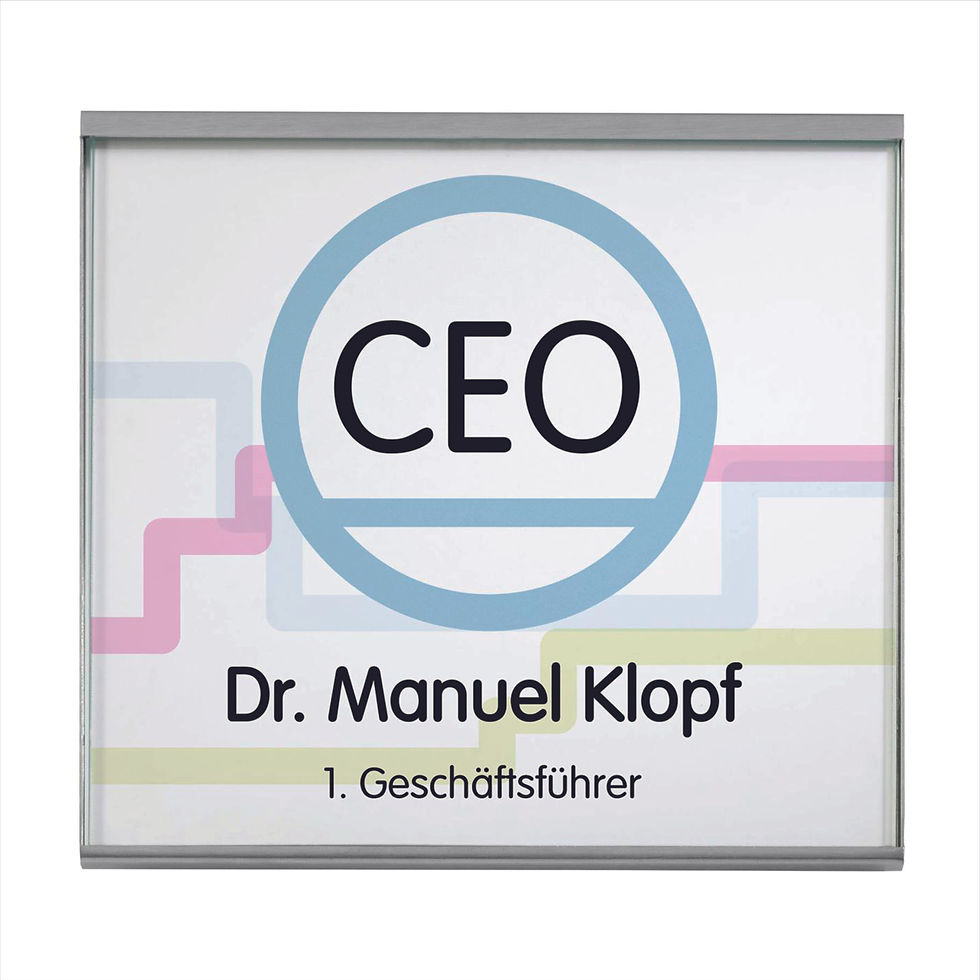 Glasgow - echtes Glas trifft auf Edelstahl und bildet eine hochwertige und stilvolle Synergie. Vom kleinen Türschild bis hin zum großen Wandschild bietet unsere Modellreihe Glasgow eine einfache und komfortable Bedienung.